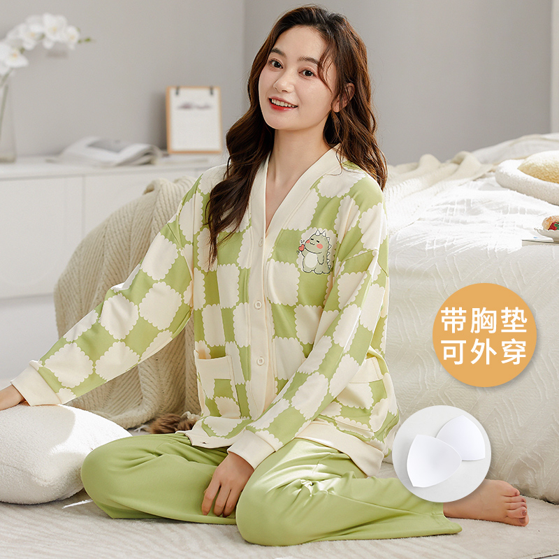 蕉内棉棉301Home家居服套装男纯棉睡衣女新款带杯带胸垫秋季长袖