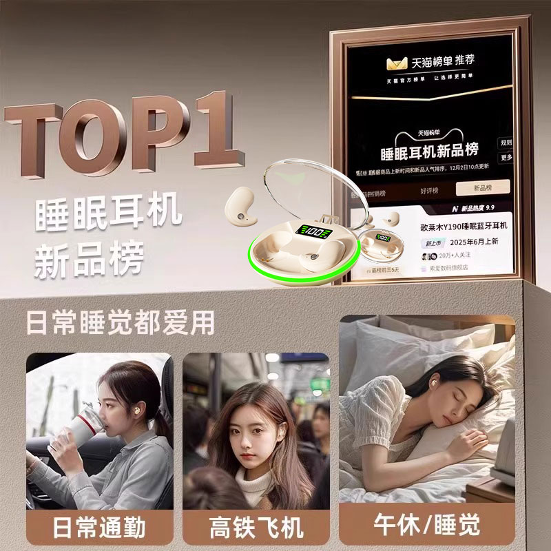 2025新款贴耳式无线蓝牙耳机长续航降噪久戴不痛睡眠隐形运动跑步