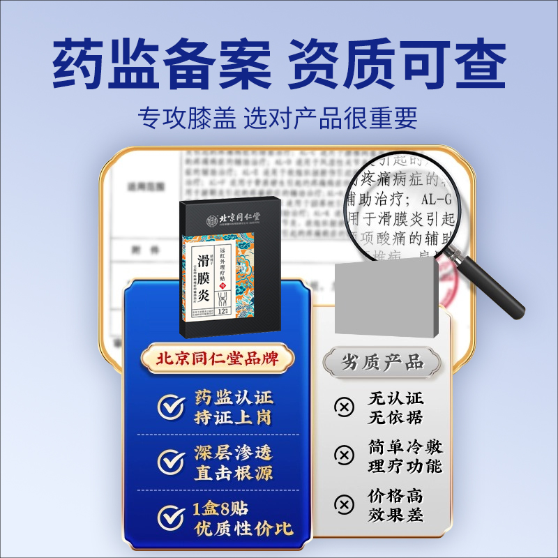 北京同仁堂膝关节炎滑膜炎外敷膝盖僵硬疼痛专用膏贴正品止痛贴