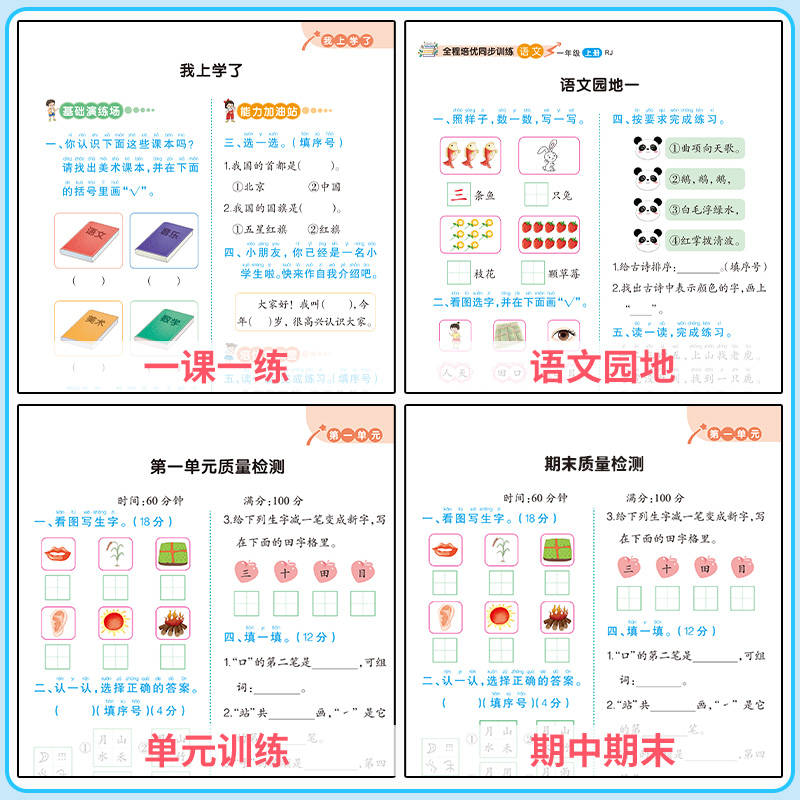 一年级同步练习册上下册语文数学训练全套人教版2025年教材一课一练作业本小学生1年级期课课练试卷测试卷阅读口算配套课本句子