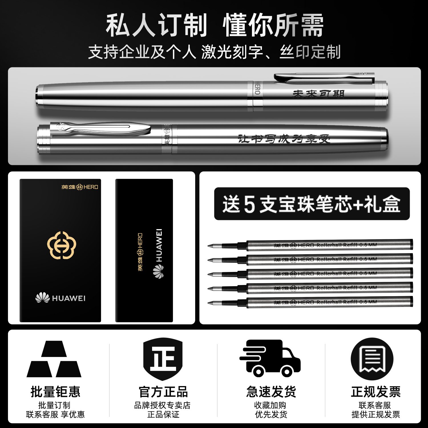 【商务礼品】英雄金属签字笔重手感2025热卖男士商务高档宝珠笔中性笔送人礼物字帖练字定制刻字官方授权