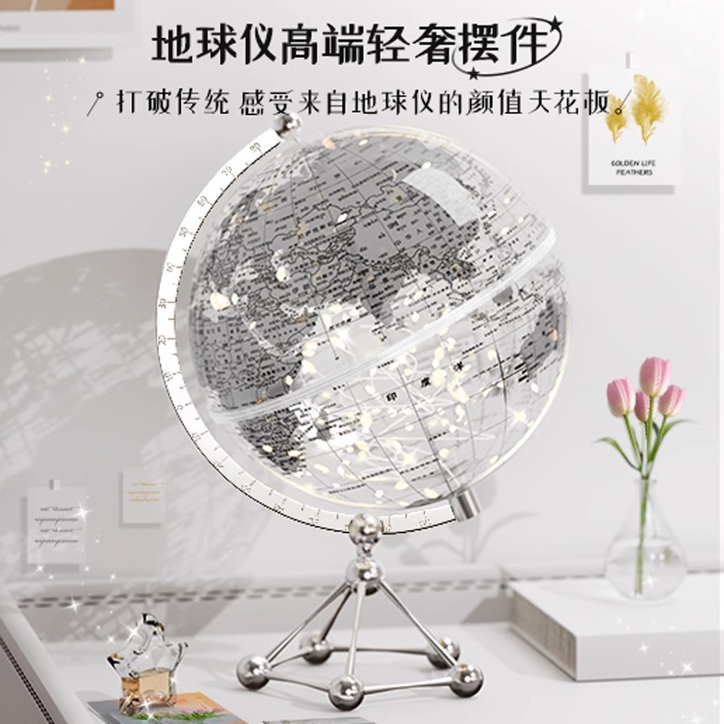 发光透明地球仪摆件高级感轻奢高档高端客厅酒柜办公室桌面水晶装饰正版小学生初中生用儿童生日礼物夜灯台灯