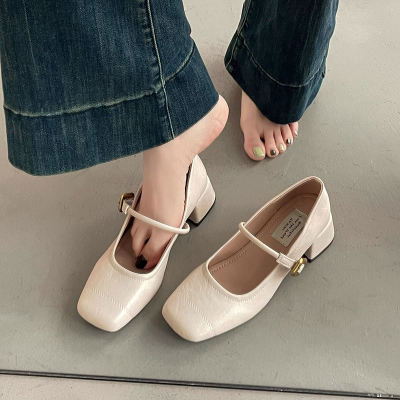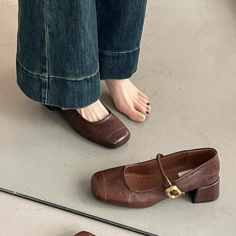 法式复古玛丽珍鞋女2025年春季新款浅口方头粗中跟配裙子浅口单鞋