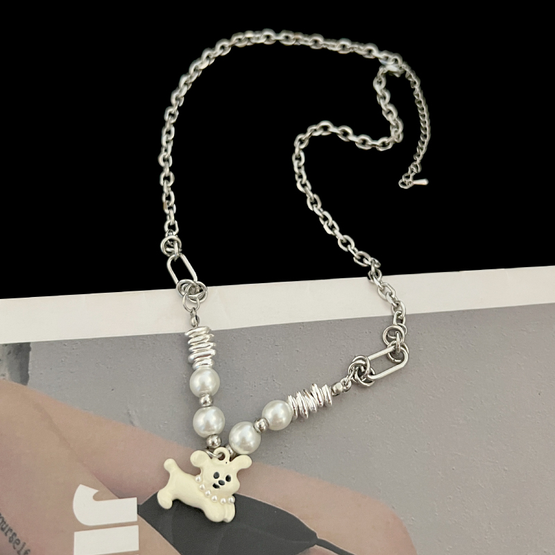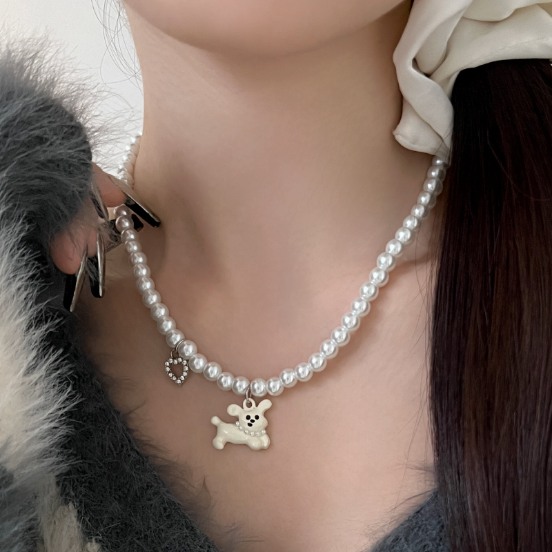 KANSAI卡通小狗珍珠项链小众设计气质百搭锁骨链秋冬甜酷女生配饰