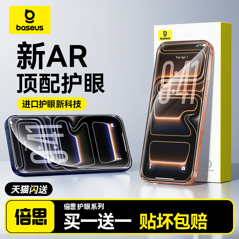 倍思无纹膜适用苹果iPhone17钢化膜16ProMax保护膜15Pro无尘仓14手机贴膜13全屏覆盖12防摔11高清AR抗反射Air