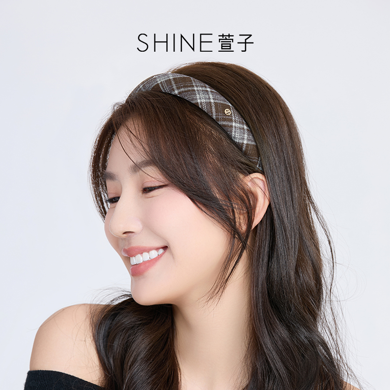 SHINE萱子可可蓝雾系列优雅复古学院风格纹发卡高颅顶发箍女