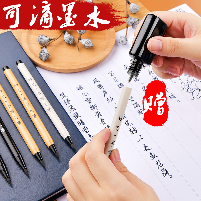 小楷毛笔套装自动出墨钢笔式软毛笔兼毫毛笔狼毫毛笔可加墨式软头小号抄经笔便携带式初学者学生专用练字毛笔