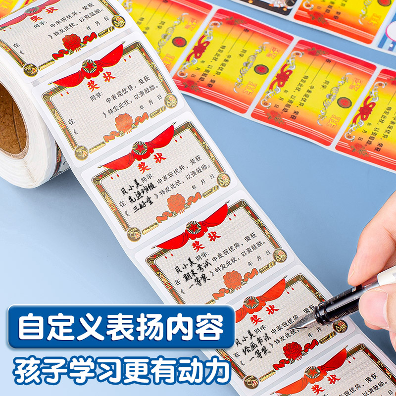 迷你小奖状贴纸定制小学生小朋友儿童奖励表扬贴信无痕可粘贴的阅读之星模板全勤宝宝荣誉证书可手写贴画