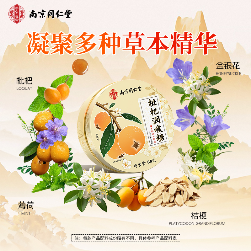 南京同仁堂枇杷润喉糖清肺化痰止咳护嗓子清凉薄荷金银花糖果海盐