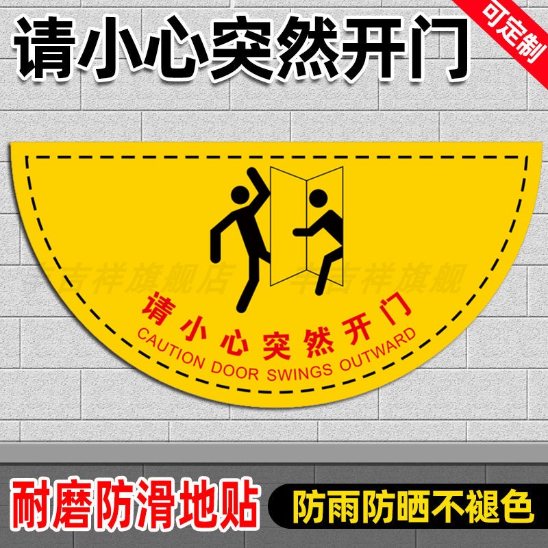 请小心突然开门扇形耐磨地贴安全提示地面标识贴门前区域请勿停留警示贴当心开门温馨提示小心开门防水标识