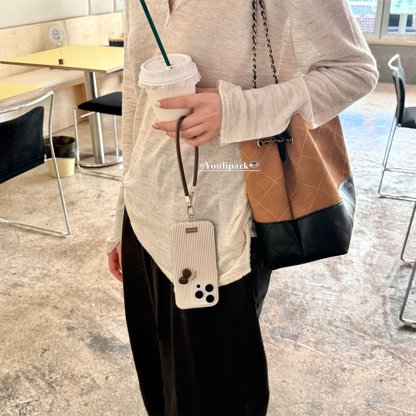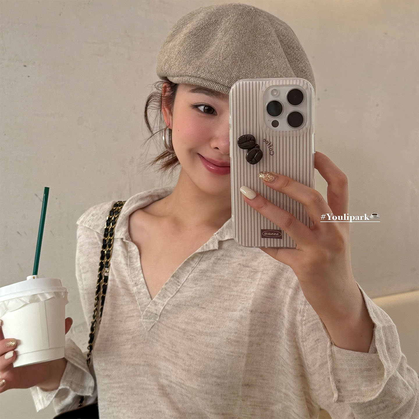 由里公园ins秋冬韩系极简条纹立体咖啡豆16适用17pro苹果17ProMax手机壳iPhone16全包14新款16Promax保护套女