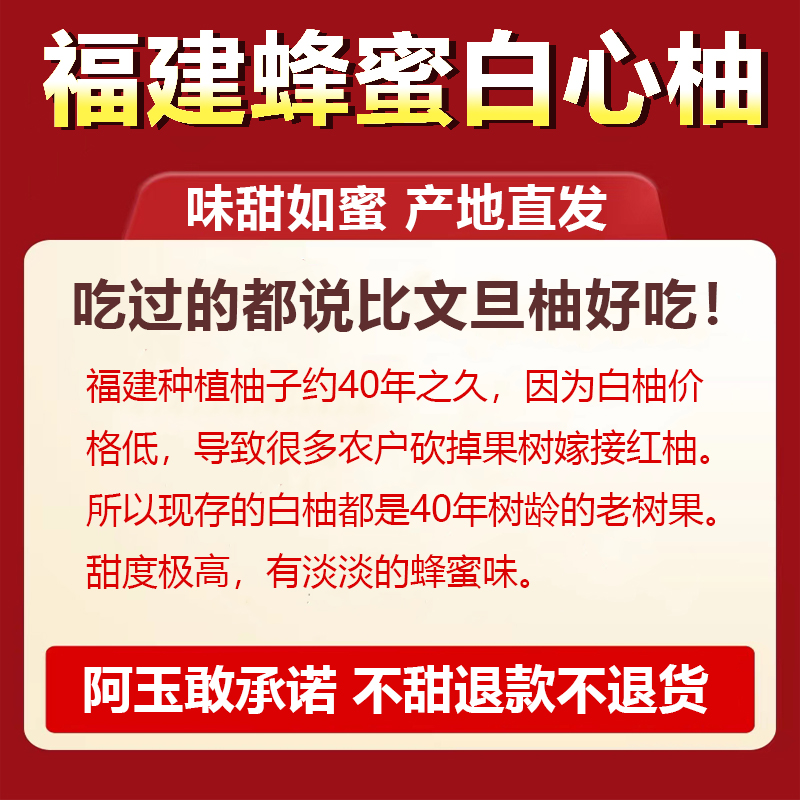 正宗福建白心柚子平和管溪蜂糖蜜柚馆溪水果大新鲜度尾文旦柚红心