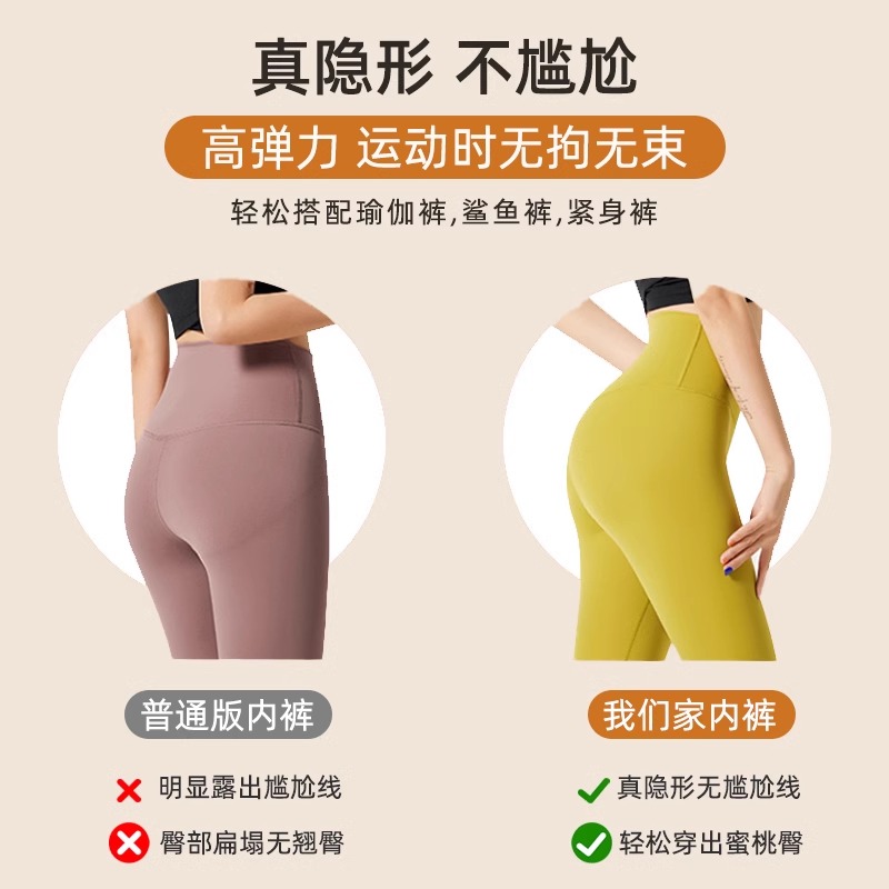 瑜伽健身无痕内裤女士桑蚕丝抗菌中腰运动不夹臀少女生短裤中高腰