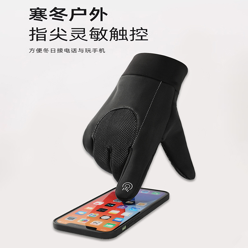 新款冬季保暖手套加绒加厚防寒触屏骑行开车户外运动德绒棉手套