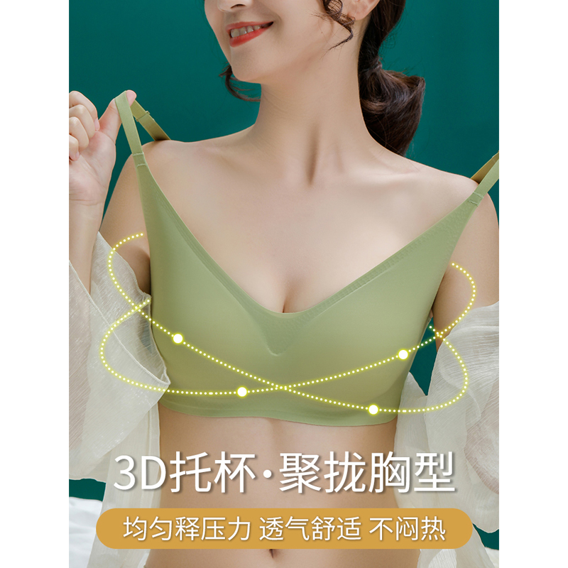 乳胶内衣女文胸薄款无钢圈聚拢防下垂大胸显小无痕美背运动内衣