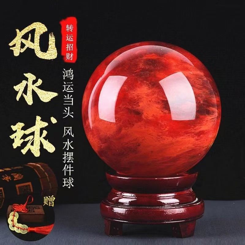 天然红色熔炼水晶球摆件招财客厅玄关鸿运当头属火办公室转运球