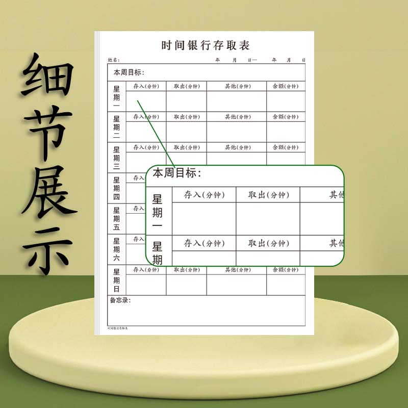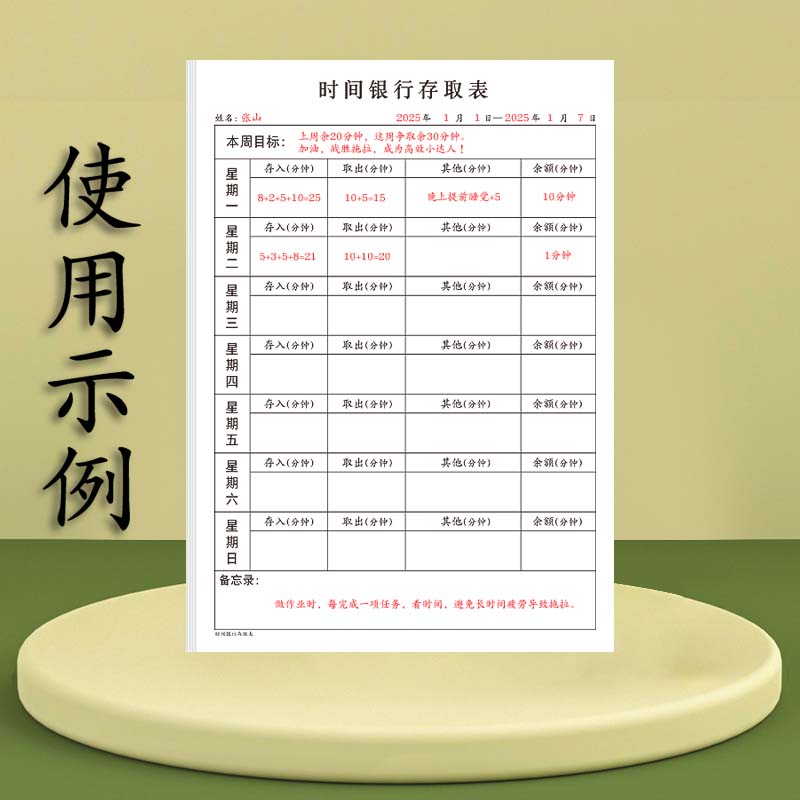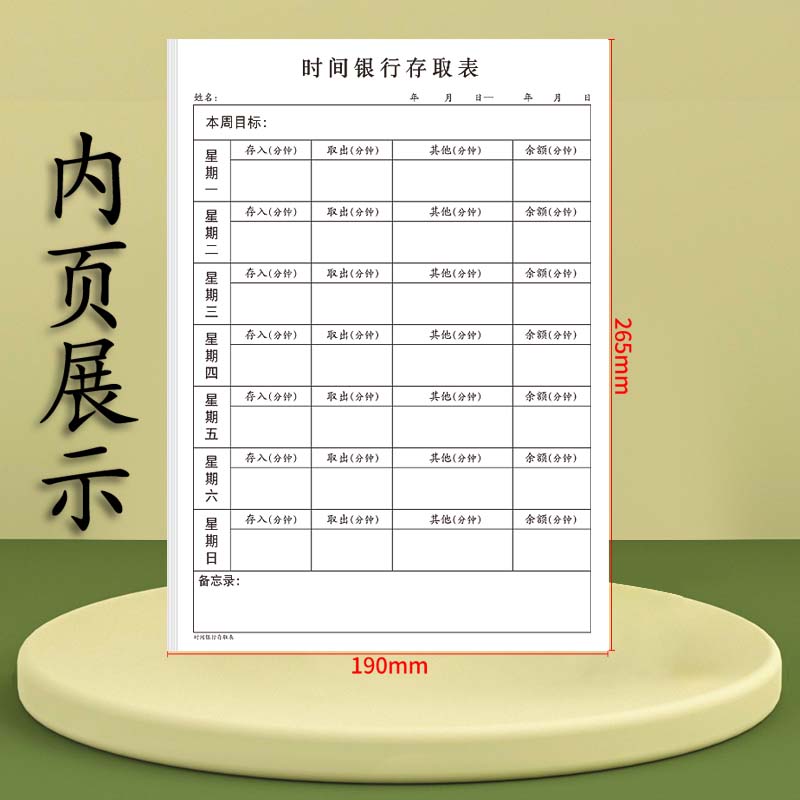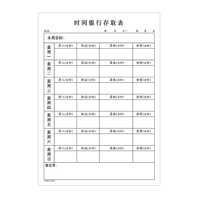 时间银行存取表每周周计划表时间管理时间银行定期计划小学生学习