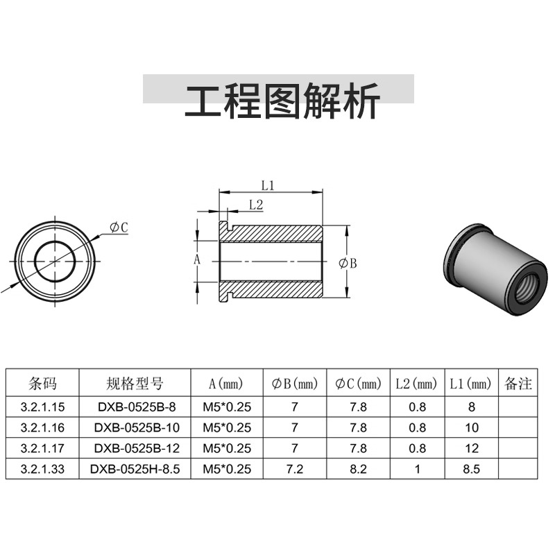 M5x0.25 细牙衬套\精密螺纹副\螺母 细牙螺母 螺纹衬套 可定制