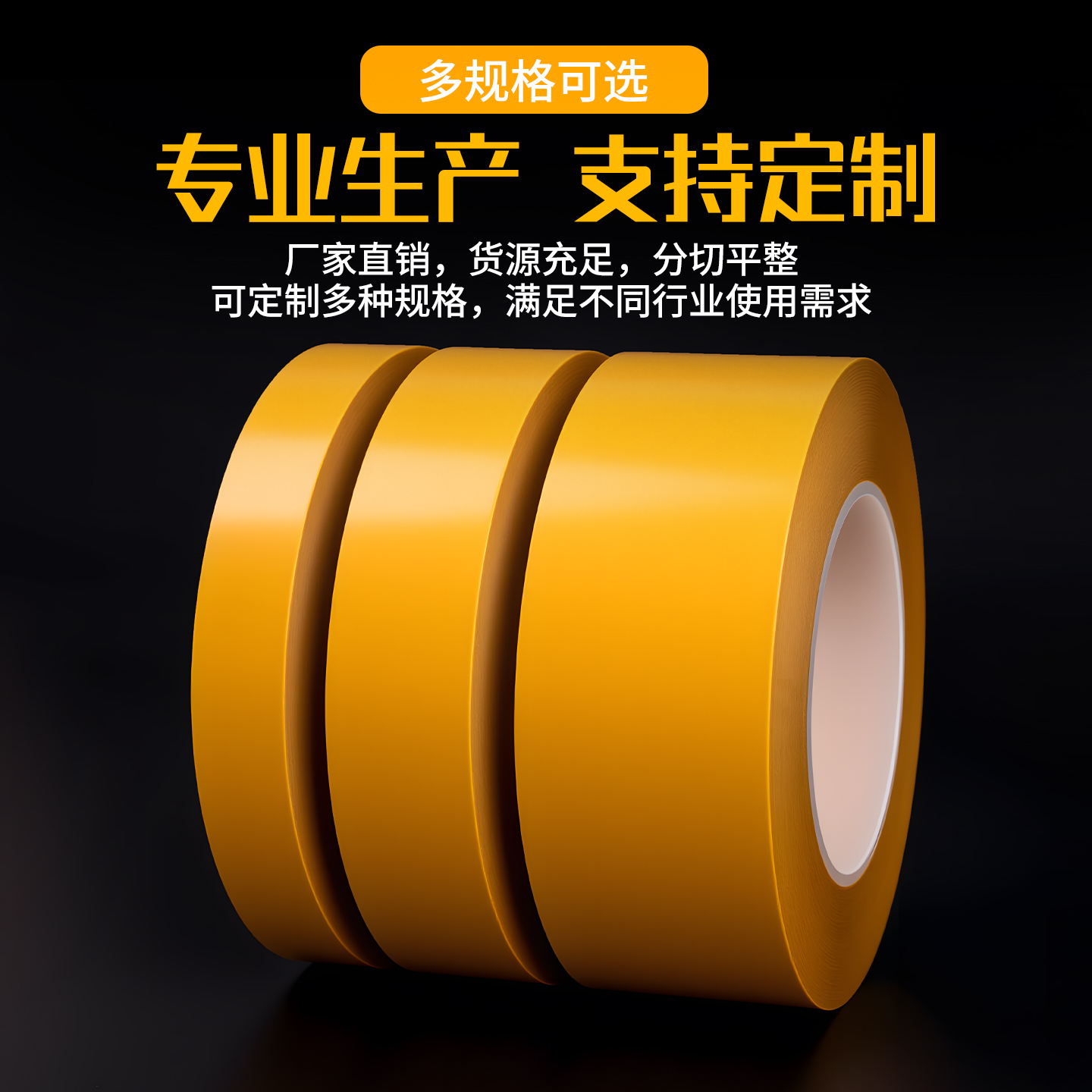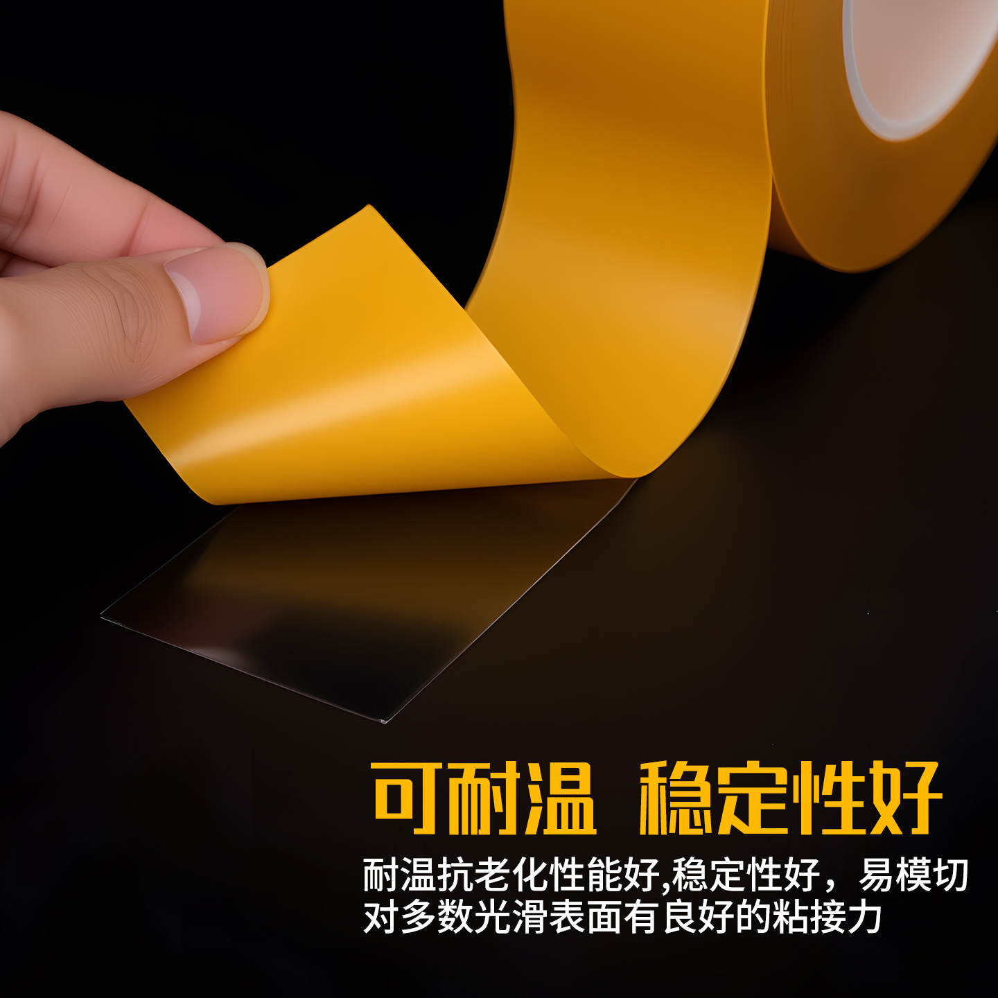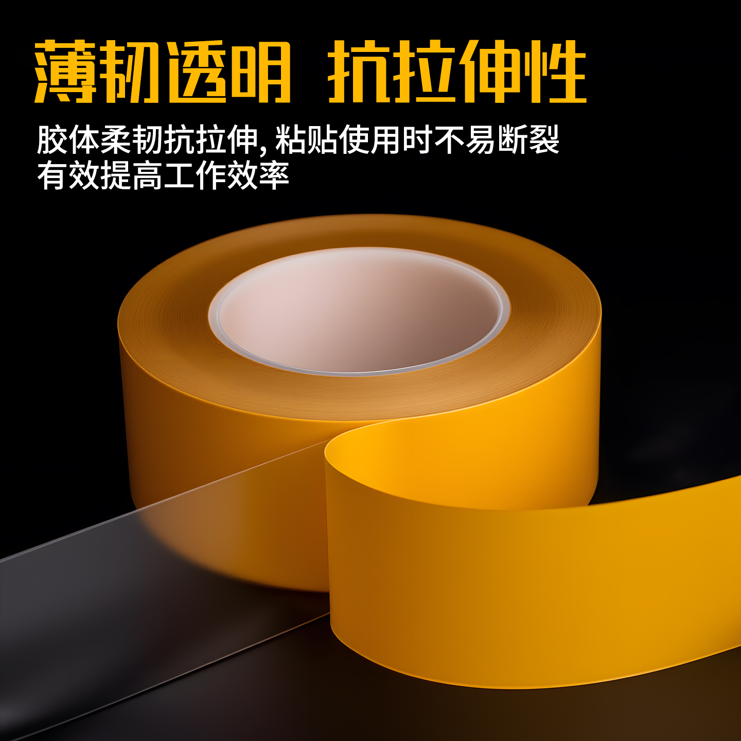黄膜7965透明PET强力高粘度超粘双面胶超薄透明无痕耐高温红膜PETCNC加工中心铝雕刻机双面胶带