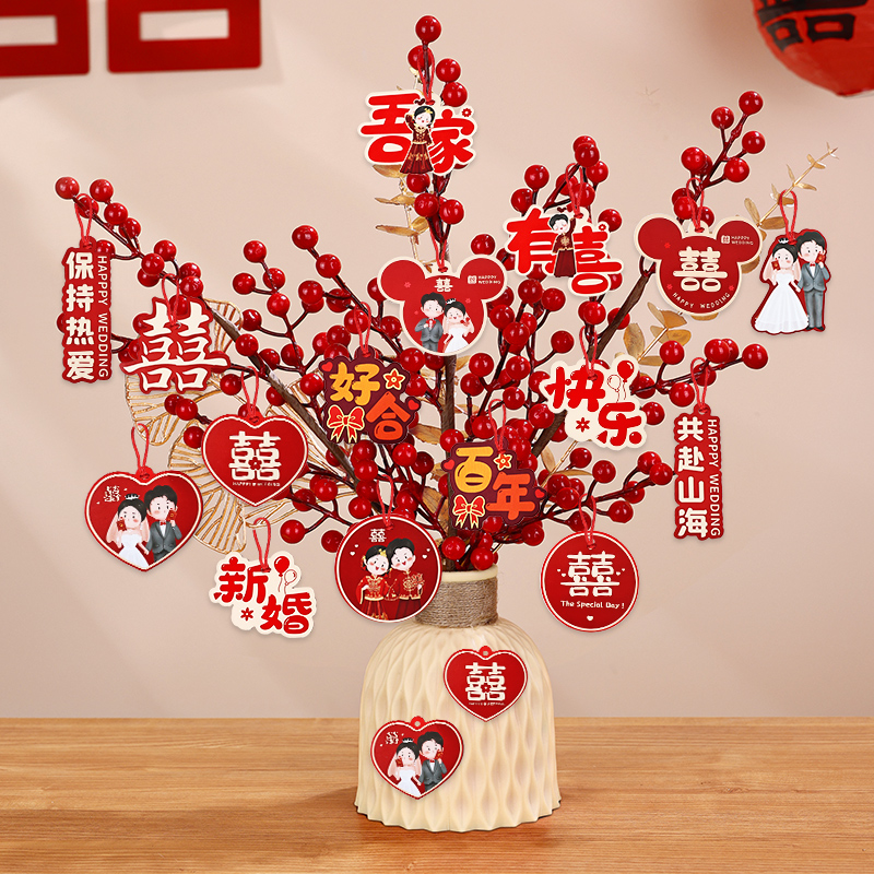 结婚婚房客厅喜字花瓶摆件订婚结婚福桶小摆件场景氛围布置装饰