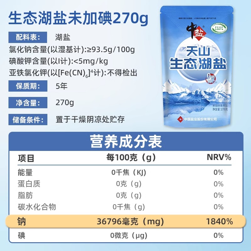中盐 天山生态湖盐270g*4【未加碘】无碘生态湖盐 未添加抗结剂