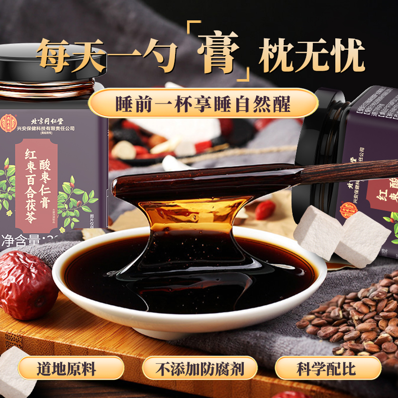 北京同仁堂酸枣仁膏百合茯苓膏睡眠质量差多梦正品官方旗舰店睡前