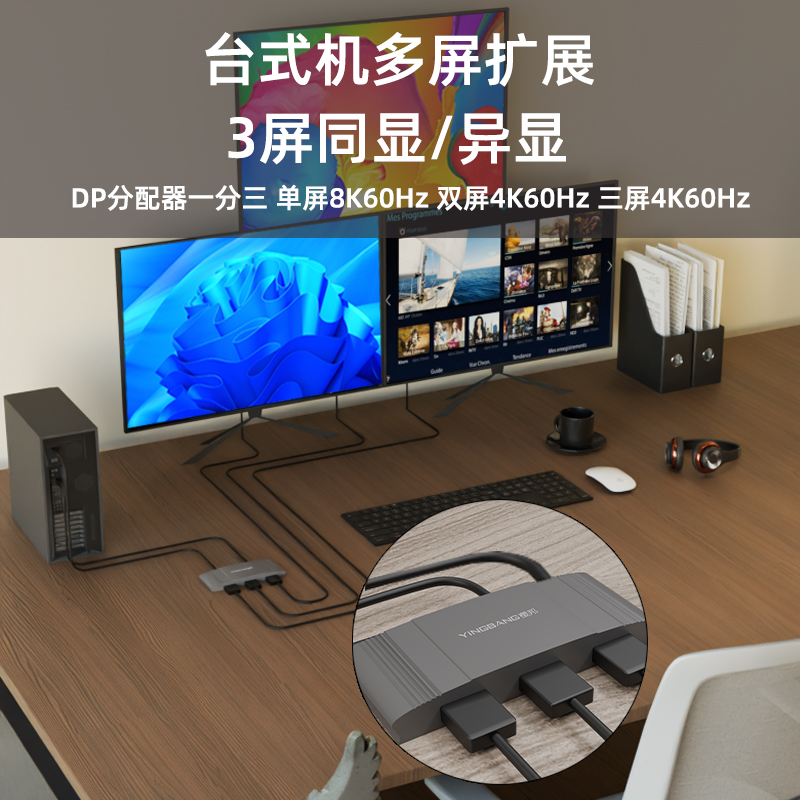 樱邦分配器DP扩展坞一机多屏异显分屏器一分二三屏幕拼接副屏转接头显示屏连接线办公期货炒股神器显卡坞拓展