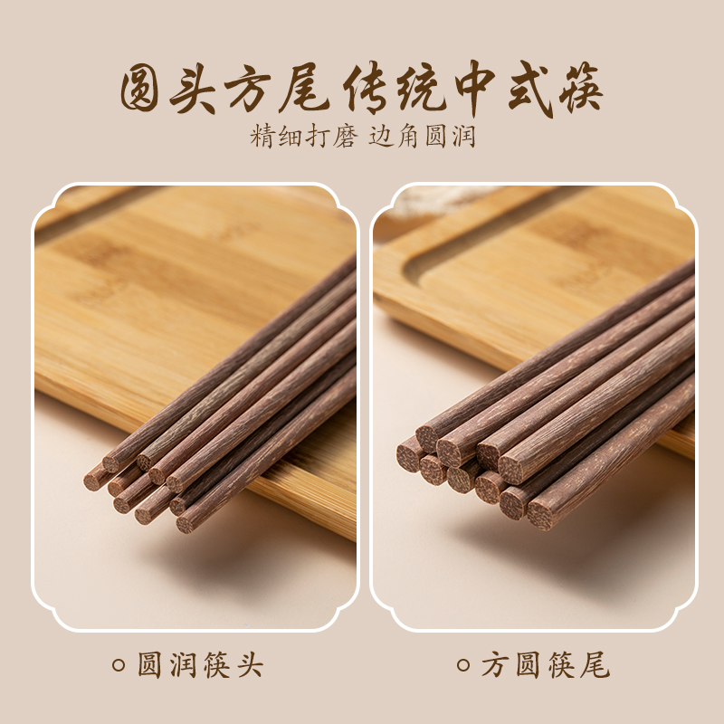 利瓷鸡翅木筷子家用防滑防霉木质快子10双20双家庭套装木箸