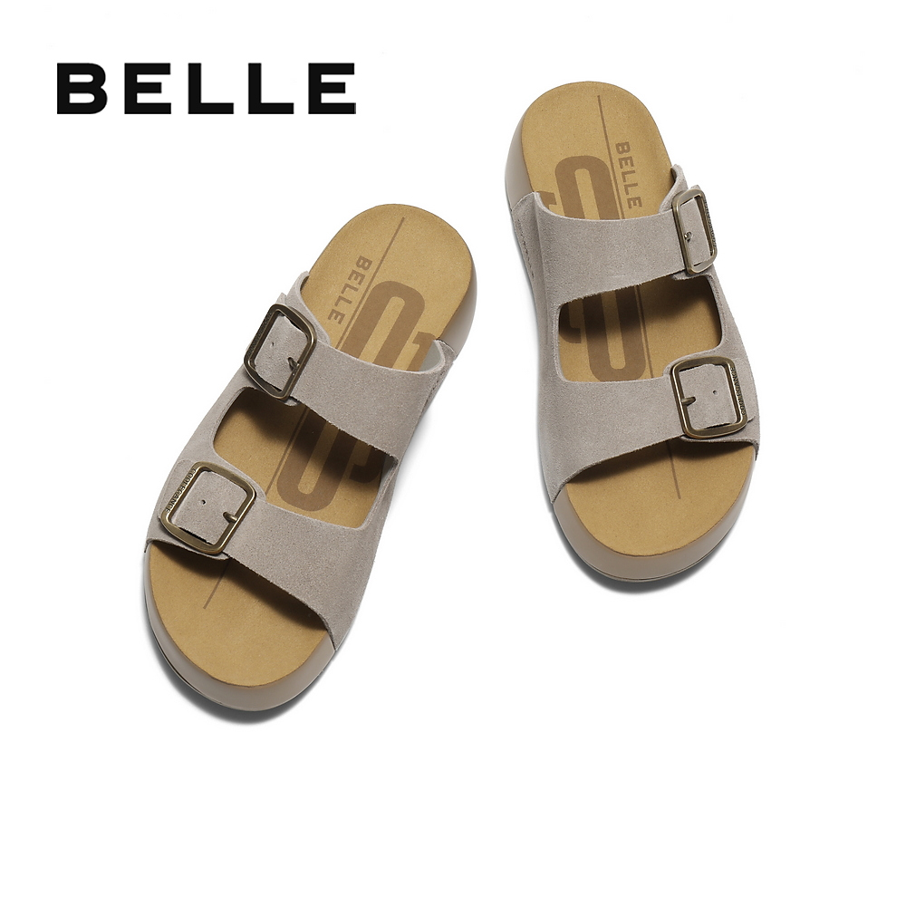 百丽男鞋生巧吐司2代厚底增高勃肯鞋男士休闲一字凉拖鞋A2108BT5