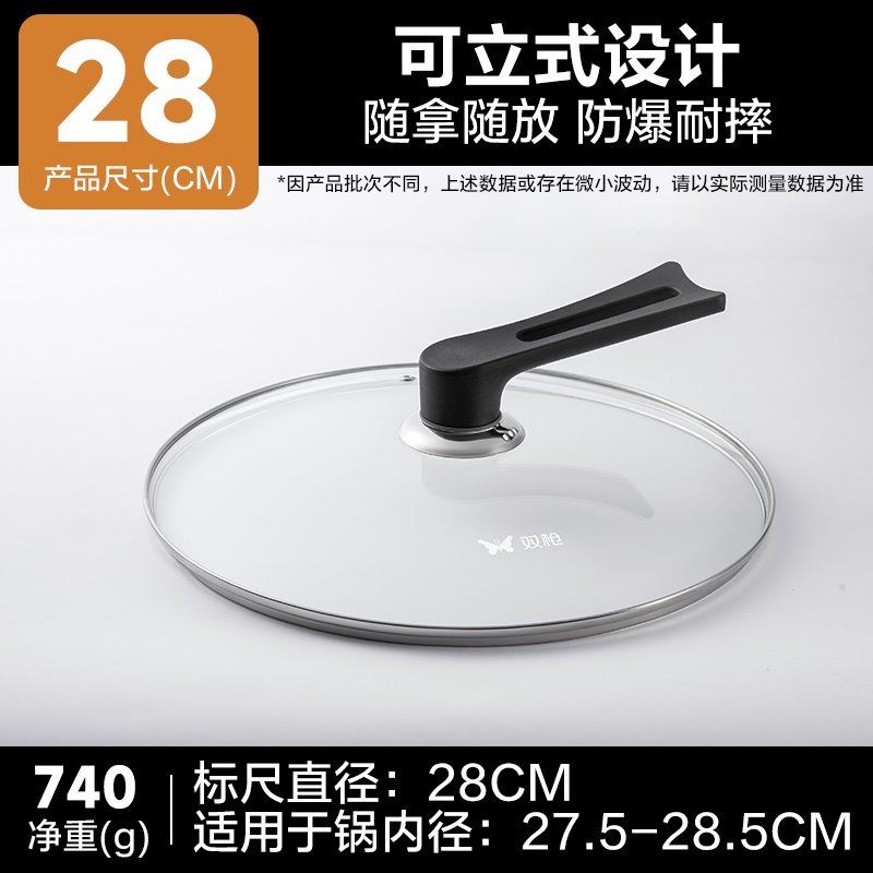 双枪可立玻璃锅盖32cm30cm家用煎锅炒锅钢化玻璃锅盖厨房通用原装
