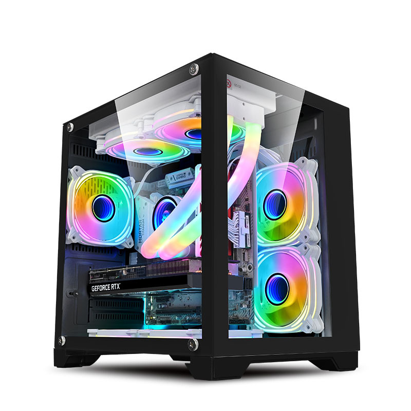 玩嘉孤勇者MINI海景房机箱 MATX全侧透玻璃240水冷无立柱电脑机箱
