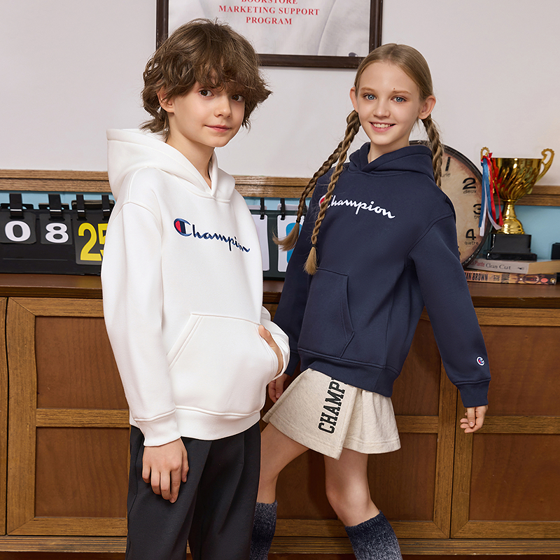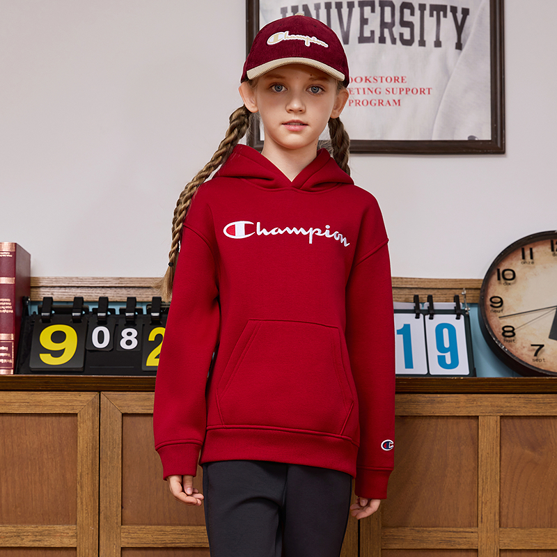 【加绒】Champion冠军童装2025秋冬新款男女复古学院连帽卫衣外套