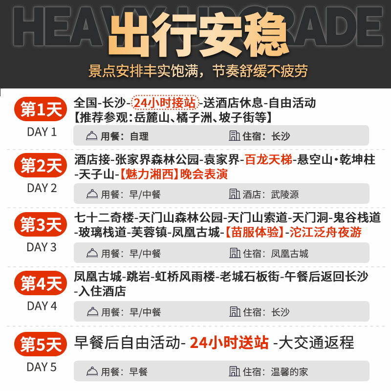 含往返长沙高铁票【2+1】航空座张家界旅游5天4晚森林公园天门山