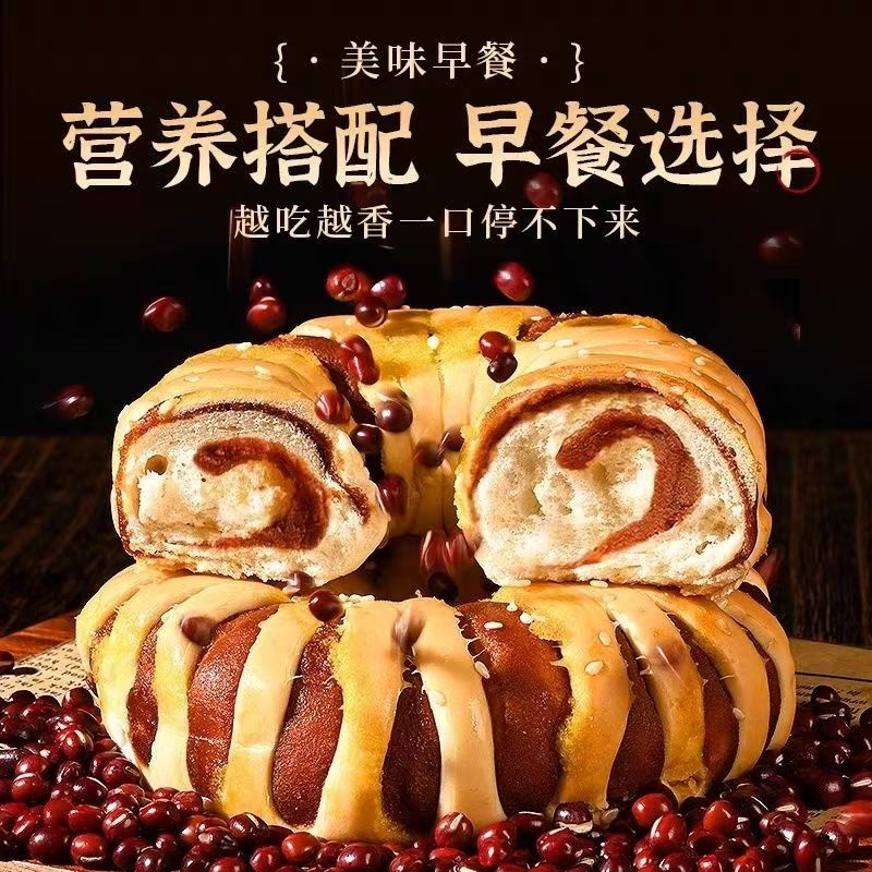 红豆沙面包圈正宗豆沙馅糕点皇冠面包营养早餐代饱腹食品