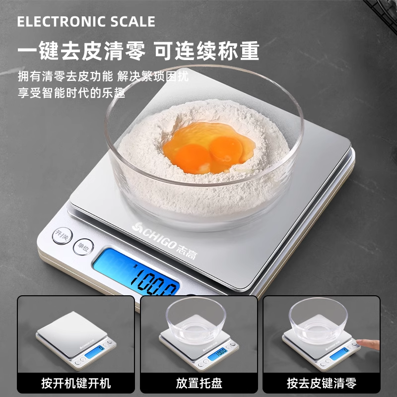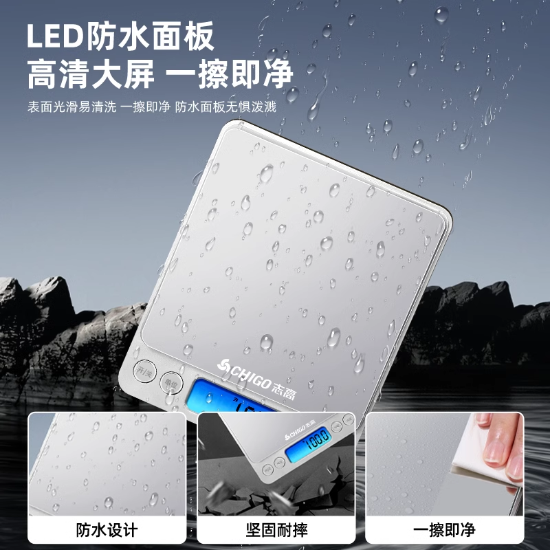 志高小型电子秤高精准度不锈钢厨房秤家用称克重烘焙食品中药小称