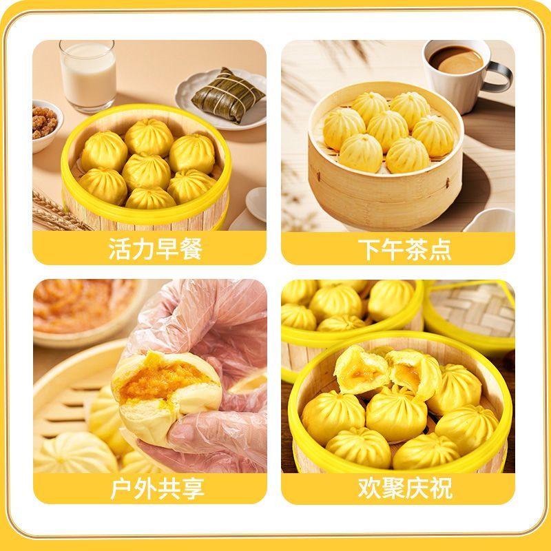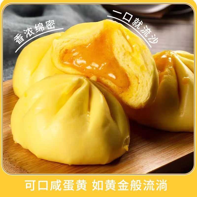 1斤流沙黄金小笼包约20个加热即食早餐速冻食品蒸熟即食顺丰冷运
