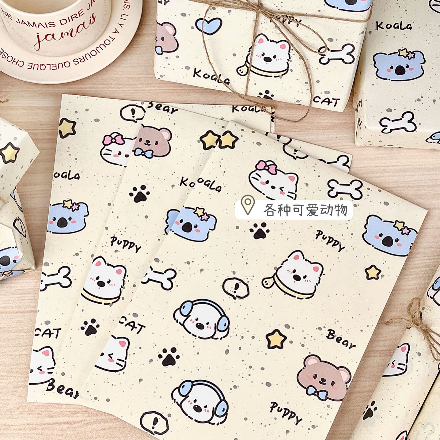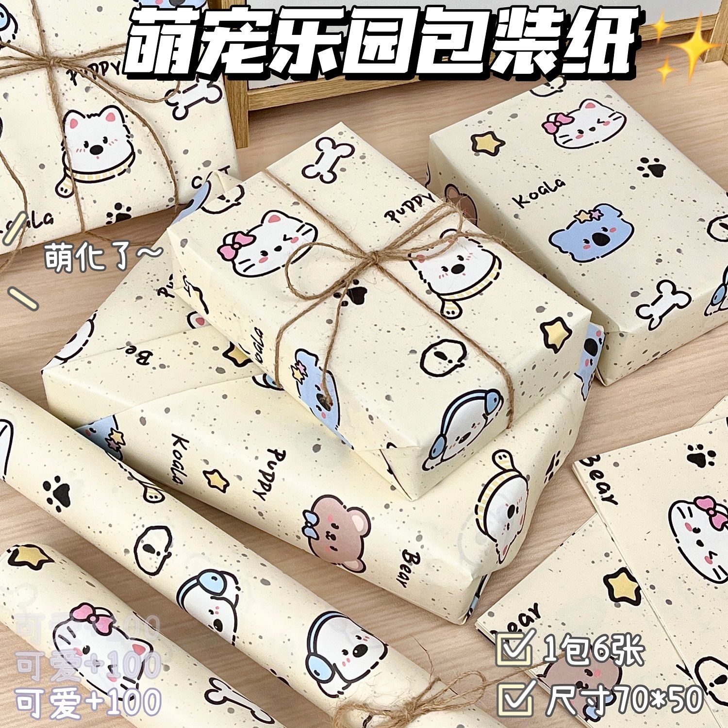 可爱萌宠乐园包装纸高颜值手绘大尺寸生日礼物教师节礼盒打包纸