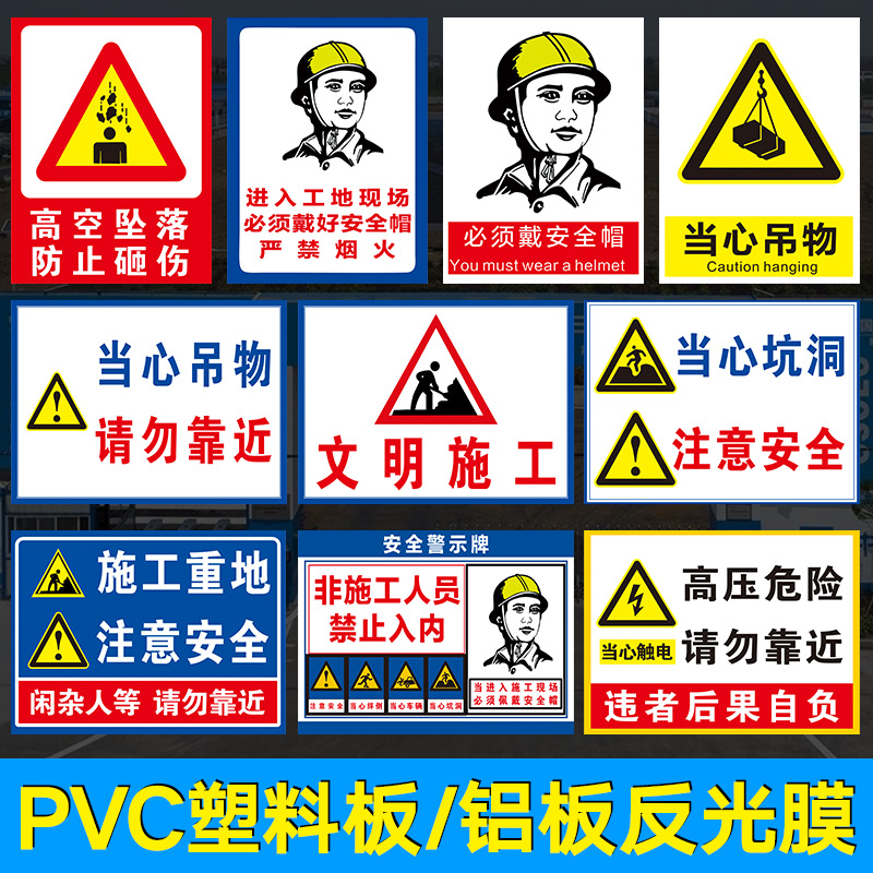 施工警示牌工地建筑标识牌全套场所注意安全闲人免进必须戴安全帽禁止攀爬当心落物提示标志牌工程标语定制做