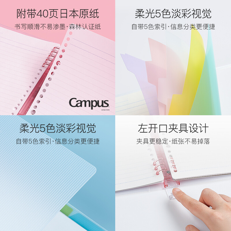 日本国誉kokuyo活页本替芯纸英语方格笔记本子记事26孔20孔内芯B5文具本可拆卸线圈旗舰店白A5可替换芯作业本