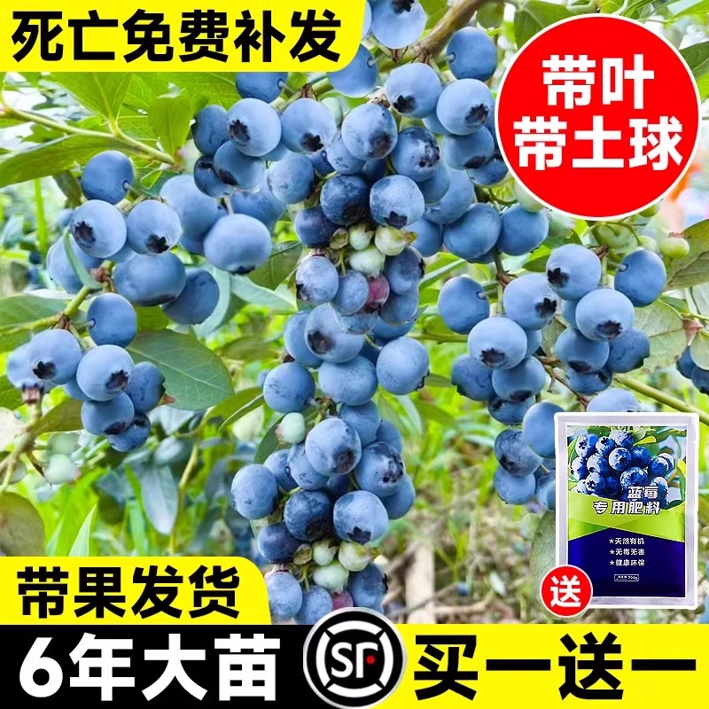 【买一送一】蓝莓树果苗盆栽大苗阳台水果树苗南北方庭院种植结果