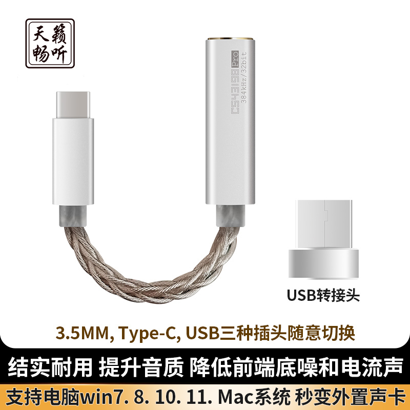 云姬cs43198pro数字dac HiF-TypeC音频解码耳放转接线转接头 便携小尾巴 b站天籁畅听 潜25十周年pro 潜韵S03