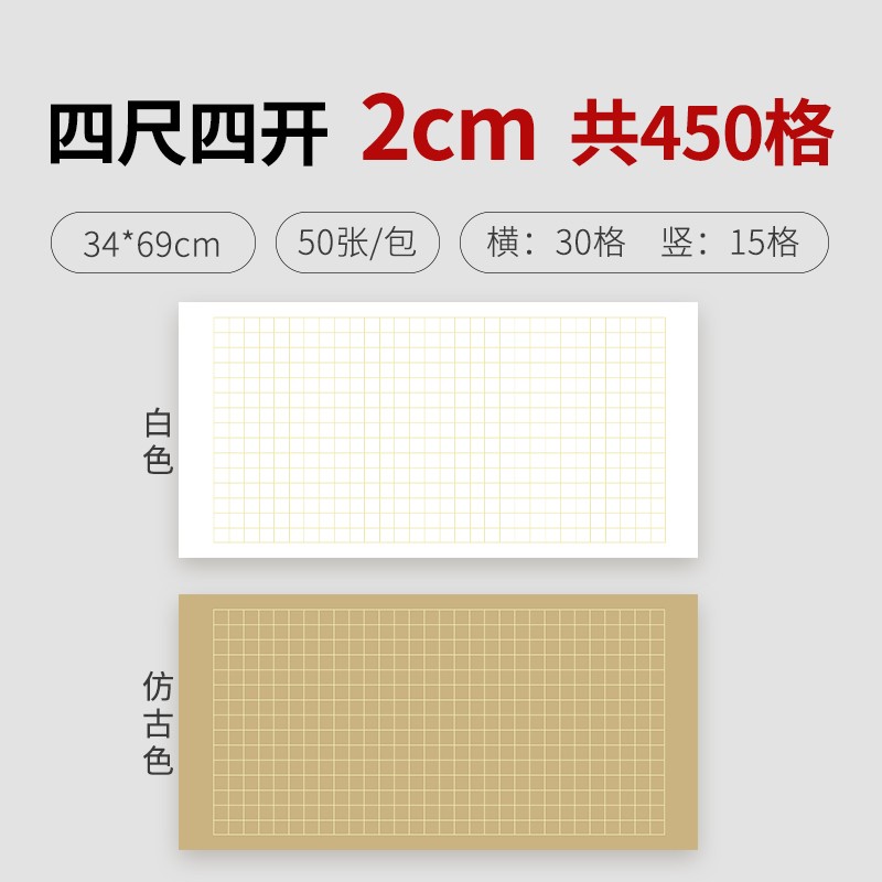 义记宣【四尺四开格子练字纸50张】初学者半生熟小楷2cm3cm金线格子日课纸软笔毛笔作品纸学生书法宣纸专用纸
