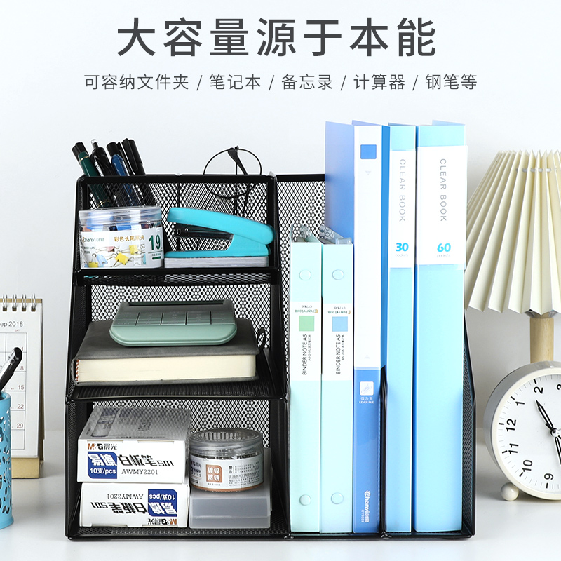 办公桌收纳置物架文件收纳盒办公用品文件架桌面书架多层大容量文件框文件夹A4纸资料档案整理架金属书立架
