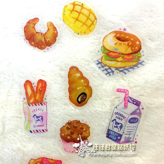 4张包邮游乐园梦幻太空面包草莓零食少女心装饰平面手帐贴纸包