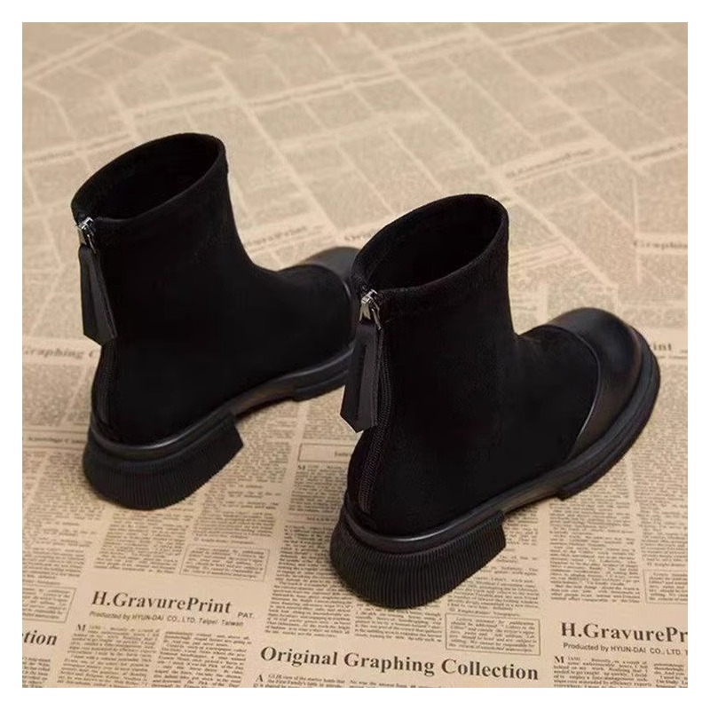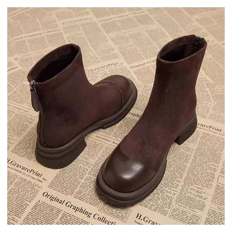 吴大叔弹力靴高跟靴子2025秋冬舒适粗跟短靴女小个子百搭瘦瘦靴