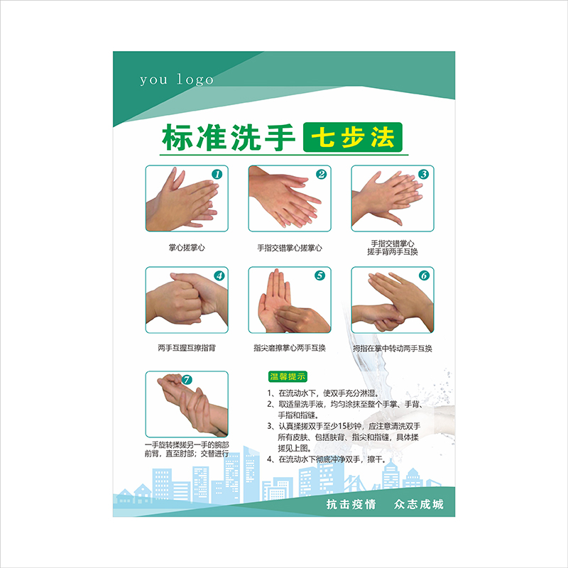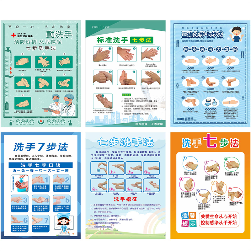七步洗手法墙贴纸医院诊所七部法步骤图贴纸幼儿园儿童学校防水洗手池标识牌卫生口腔提示牌标识牌定制