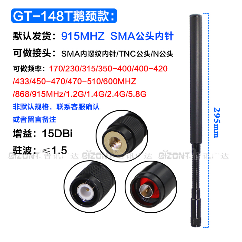 LoRa/NB模块全向高增益玻璃钢天线 840/868/900兆/915MHz/1.2G/1.4G/2.4G 鹅颈弹簧减震天线923MHz鞭状软天线