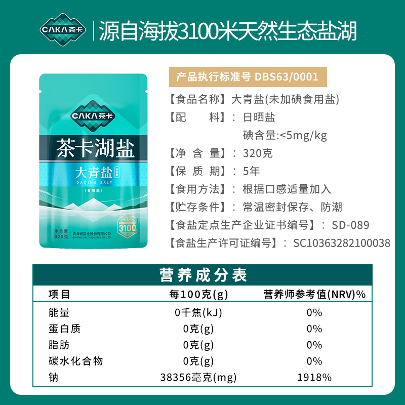 大青盐未加碘青藏茶卡湖盐无抗结剂食用炒菜细盐官方正品320g/袋