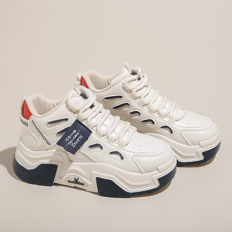 厚底百搭小白鞋女2024新款秋季皮面增高运动休闲板鞋老爹专业圆头