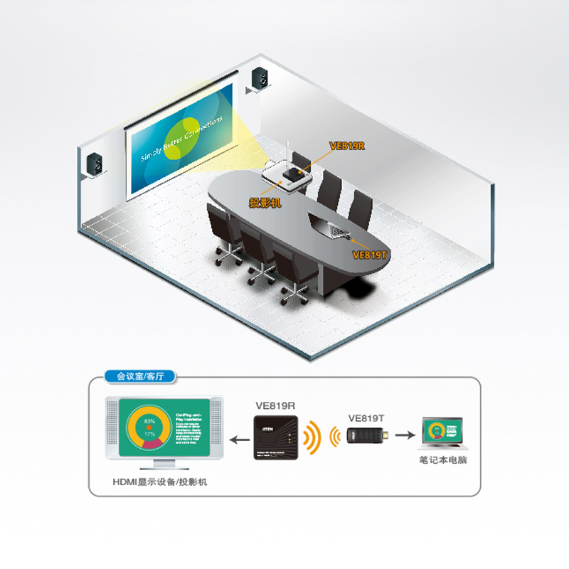 ATEN 宏正 VE819,HDMI Dongle无线信号延长器即插即用 电脑笔记本无线延伸或投射